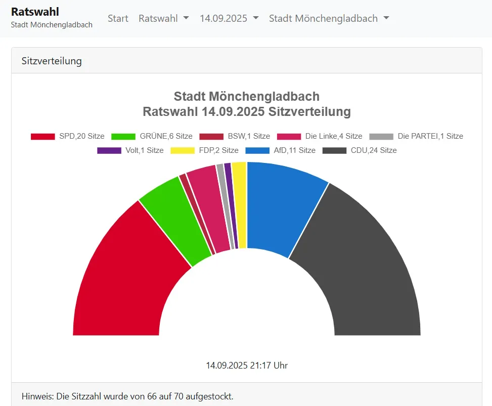 Die Sitzverteilung im Rat der Stadt Mönchengladbach: