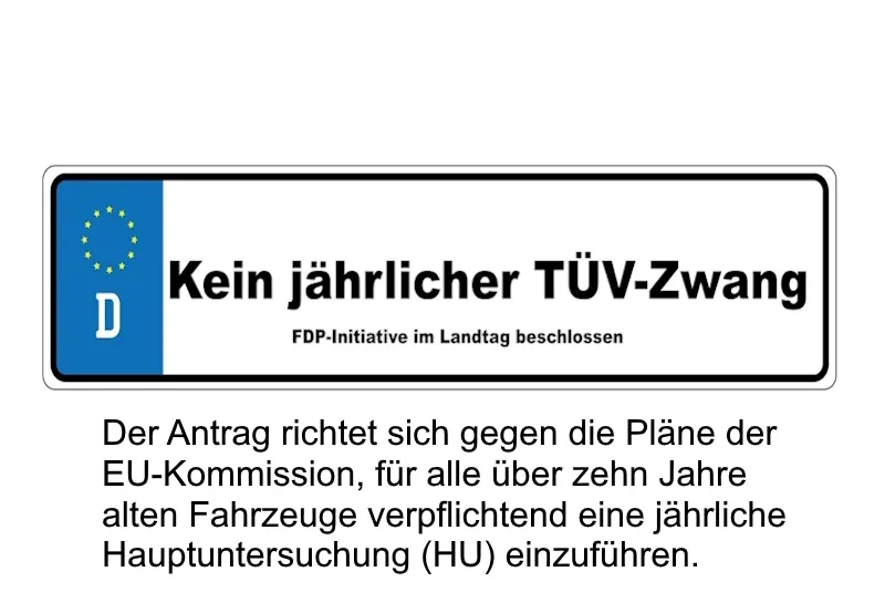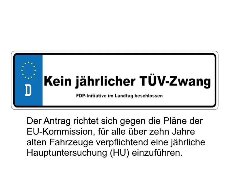 Der Antrag richtet sich gegen die Pläne der EU-Kommission, für alle über zehn Jahre alten Fahrzeuge verpflichtend eine jährliche Hauptuntersuchung (HU) einzuführen. Eine entsprechende Initiative (Drs. 18/14019) hatte die FDP-Fraktion bereits im Mai in den Landtag eingebracht. Mittlerweile haben sich dem Anliegen auch die Fraktionen von CDU, SPD und Grünen angeschlossen, sodass der liberale Antrag mit kleinen Anpassungen und breiter Mehrheit beschlossen wurde.