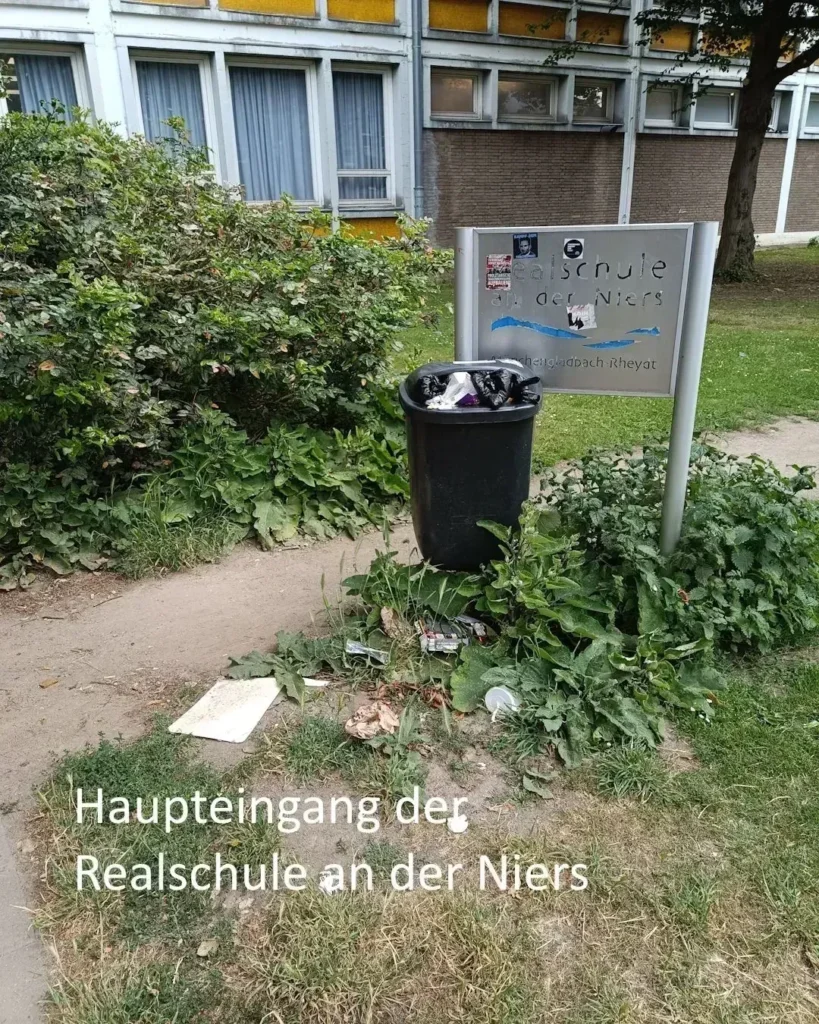 Startseite » Mülleimer aufstellen alleine reicht nicht – Anwohner der Realschule Mülfort beklagen überquellende Abfallbehälter