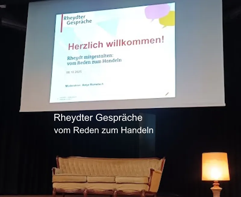 Unter dem Motto „Vom Reden ins Handeln“ fanden am Mittwochabend, 8. Oktober 2025, die Rheydter Gespräche in der Aula des Gymnasiums an der Gartenstraße statt. Die Veranstaltung bot erneut eine offene Plattform für Bürgerinnen und Bürger, Initiativen, Vereine und Vertreterinnen der Stadtverwaltung, um über aktuelle Themen und Zukunftsperspektiven des Stadtteils Rheydt zu diskutieren.
