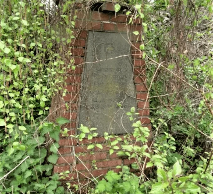 Nachdem die ehemaligen Sportanlage „Am Torfbend“ aufgegeben wurde, schlummert der Gedenkstein zugewachsen und vergessen am Ende des Sportplatzes vor sich hin.