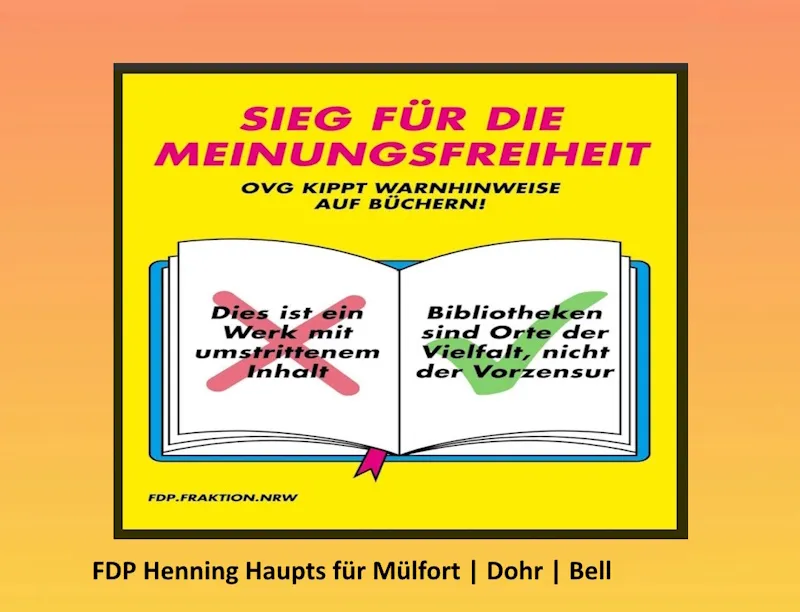 Wir Freie Demokraten begrüßen das Urteil als starkes Signal für Meinungsfreiheit und gegen staatliche Bevormundung. ⚖️ Warnhinweise wie in Münster gefährden den freien Diskurs und widersprechen der Neutralitätspflicht öffentlicher Einrichtungen.